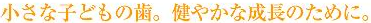小さな乳幼児から永久歯が生えそろう学童期までのお子様には虫歯を治すのはもちろん、予防や永久歯の歯並び、正しい噛み合わせ予防や永久歯の歯並び、正しい噛み合わせのためのケアも行います。むし歯菌をすみにくくするブラークコントロールや歯質を強くするためのフッ素塗布から、歯磨きが苦手な乳幼児へのお客様へのアドバイスまで。お子様が歯科治療に恐怖心をいだかないような明るく楽しいコミュニケーションで健やかな成長のため、お母様と一緒に、健康で丈夫な美しい歯を育てたいと思っています。 |
